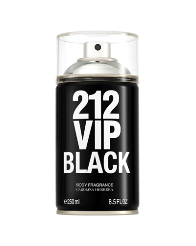 A marca Carolina Herrera, buscando revigorar a essência da emblemática coleção 212, volta a nos deslumbrar com o 212 VIP Black Body Spray. Um spray corporal que se une ao universo 212 e encanta pelo seu novo frasco prático, dinâmico e ultramoderno. Um frasco de design único idêntico a um spray de grafite. Ao sacudi-lo, é possível escutar o barulho da bolinha metálica no interior como numa lata de grafite. As essências das notas aromáticas dessa fragrância combinam com a diversão e jovialidade de um Body Spray.
