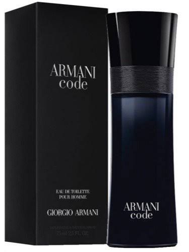 Lançado originalmente como Black Code no início dos anos 2000, o perfume da refinada grife Armani levou o prêmio FiFi Awards de Fragrância Masculina de Luxo em 2006. Foi relançado em 2012 apenas como Code. Sua criação é de responsabilidade dos competentes perfumistas Antoine Maisondieu, Antoine Lie e Clement Gavarry.