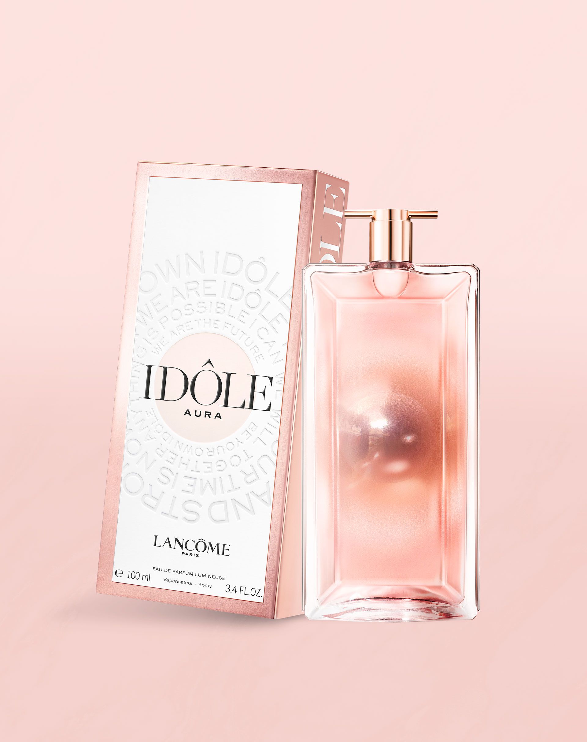 Idôle Aura, o perfume de toda uma comunidade de mulheres que querem viver seu grande sonho. Com Idôle Aura, o caminho para o sucesso é um conjunto de conquistas. Um novo eau de parfum que encarna a luz imbatível do sucesso que se difunde e partilha de uma mulher para outra. Uma energia poderosa que reúne e une toda uma comunidade de ídolas. Preparada, nada é impossível. Juntas, somos todas ídolas.
